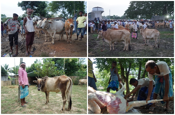 Assam eyaletinin geneline yayılmış farklı noktalarda 5.810 hisse kurban kesilecek. Hojai ve çevresindeki farklı noktalarda, biz gelmeden alınan kurbanlıkları kontrol ediyoruz. Tamamına yakını büyükbaşlardan oluşuyor.