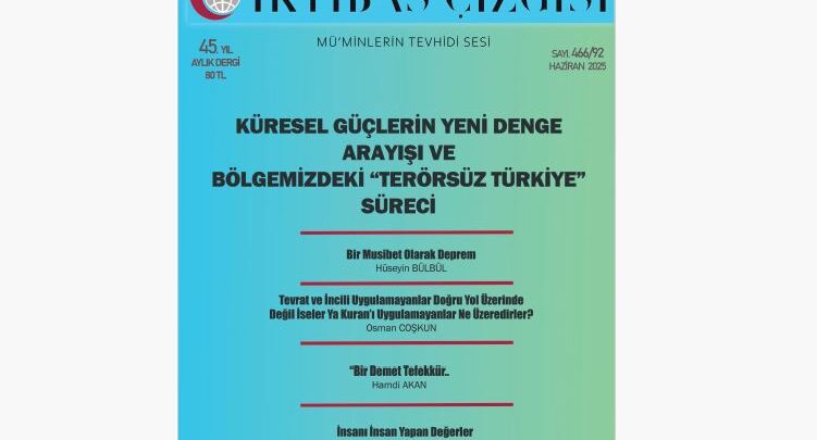 İktibas Çizgisi Haziran 2025/466-92. Sayısı Abdullah PAMUK’un kaleme aldığı “KÜRESEL GÜÇLERİN YENİ DENGE ARAYIŞI VE BÖLGEMİZDEKİ “TERÖRSÜZ TÜRKİYE” SÜRECİ” manşeti ile okuyucusuyla buluşuyor.