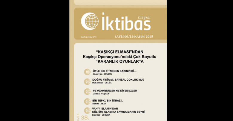 İktibas Çizgisi Kasım  2018/466-13. Sayısı Abdullah PAMUK’un kaleme aldığı    ““KAŞIKÇI ELMASI”NDAN Kaşıkçı Operasyonu’ndaki Çok Boyutlu “KARANLIK OYUNLAR”a” manşeti ile okuyucusuyla buluşuyor.