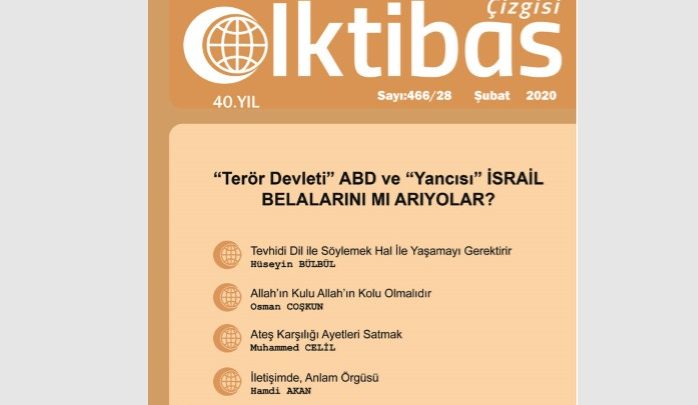 İktibas Çizgisi Şubat 2020/466-28. Sayısı Abdullah PAMUK’un kaleme aldığı “Terör Devleti” ABD ve “Yancısı” İSRAİL BELALARINI MI ARIYOLAR?” manşeti ile okuyucusuyla buluşuyor.