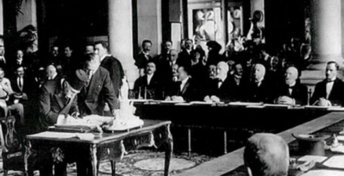 Sevr Andlaşması’nın imza töreni: Hâdi Paşa metni imzalıyor.