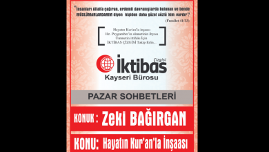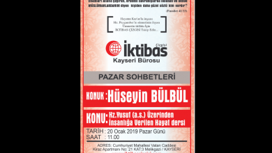 Kayseri İktibas Çizgisi Bürosunun Pazar Sohbetleri programının bu hafta ki konuğu Dergimiz ve Sitemiz Genel Yayın Sorumlusu ve Yazarı Hüseyin BÜLBÜL olacaktır, “Hz.YUSUF…