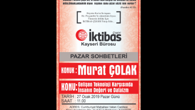 Kayseri İktibas Çizgisi Bürosunun Pazar Sohbetleri programının bu hafta ki konuğu Dergimiz ve Sitemiz Yazarlarından Enes GÜNASLAN olacaktır, “DİJİTAL ÇAĞDA MÜSLÜMAN OLMAK”konusunun konuşulacağı bu buluşmaya…