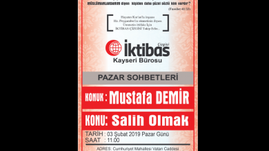 Kayseri İktibas Çizgisi Bürosunun Pazar Sohbetleri programının bu hafta ki konuğu Mustafa Demir olacaktır, “SALİH OLMAK” konusunun konuşulacağı bu buluşmaya tüm kardeşlerimiz davetlidir.… YER:İktibas Çizgisi Kayseri…
