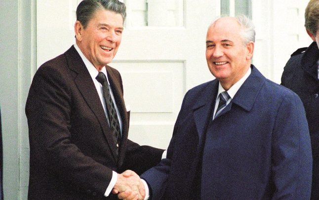 Tarihi ile sıkışmaların umutları tazelediği fotoğraflarda biraz daha ilerliyoruz. Bu defa yıl 1990 yer San Francisco. SSCB Komünist Partisi Genel Sekreteri ve SSCB Devlet Başkanı Mihail Gorbaçov, ABD Başkanı Ronald Reagan ile mutlu günlerinde. Gorbaçov ile Reagan’ın Soğuk Savaşı bitirdikleri süreçte buna benzer pek çok pozları var. Glasnost (Açıklık) ve Perestroyka (Yeniden Yapılanma) politikalarının mimarı Gorbaçov, yıllar sonra bu tarihi el sıkışma pozlarından pişman olduğunu açıklayacaktı.